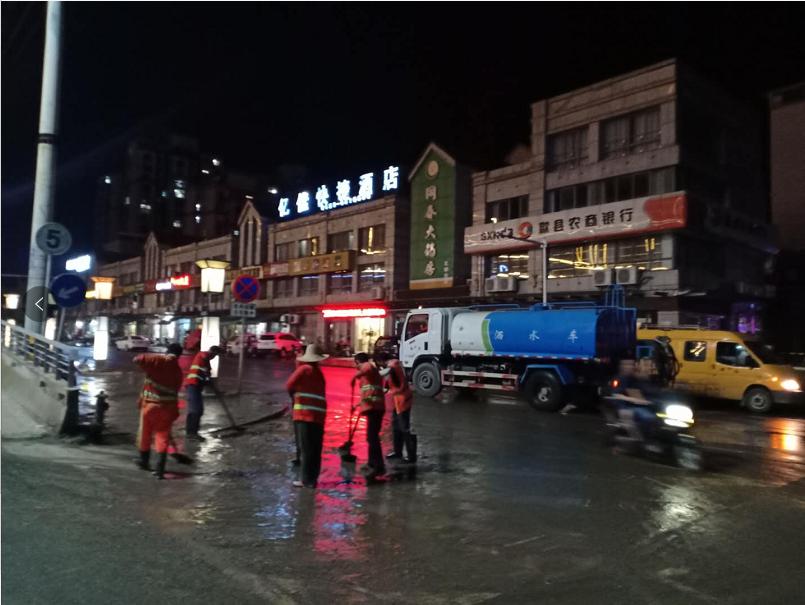 庚子多災(zāi)難,疫情甫定,洪水又來。近日,歙縣遭遇入汛以來最強(qiáng)降雨,洪水倒灌圍城、高考延期。大雨侵襲后,洪水雖已退去,但遍布各種垃圾、雜物和淤泥的城市道路、廠房仍舊一片狼藉,災(zāi)后重建任務(wù)艱巨。7月11日上午,集團(tuán)公司緊急組織2個(gè)班組20多個(gè)施工作業(yè)人員,投入4臺(tái)灑水車、3臺(tái)裝載機(jī)支援災(zāi)后重建工作。