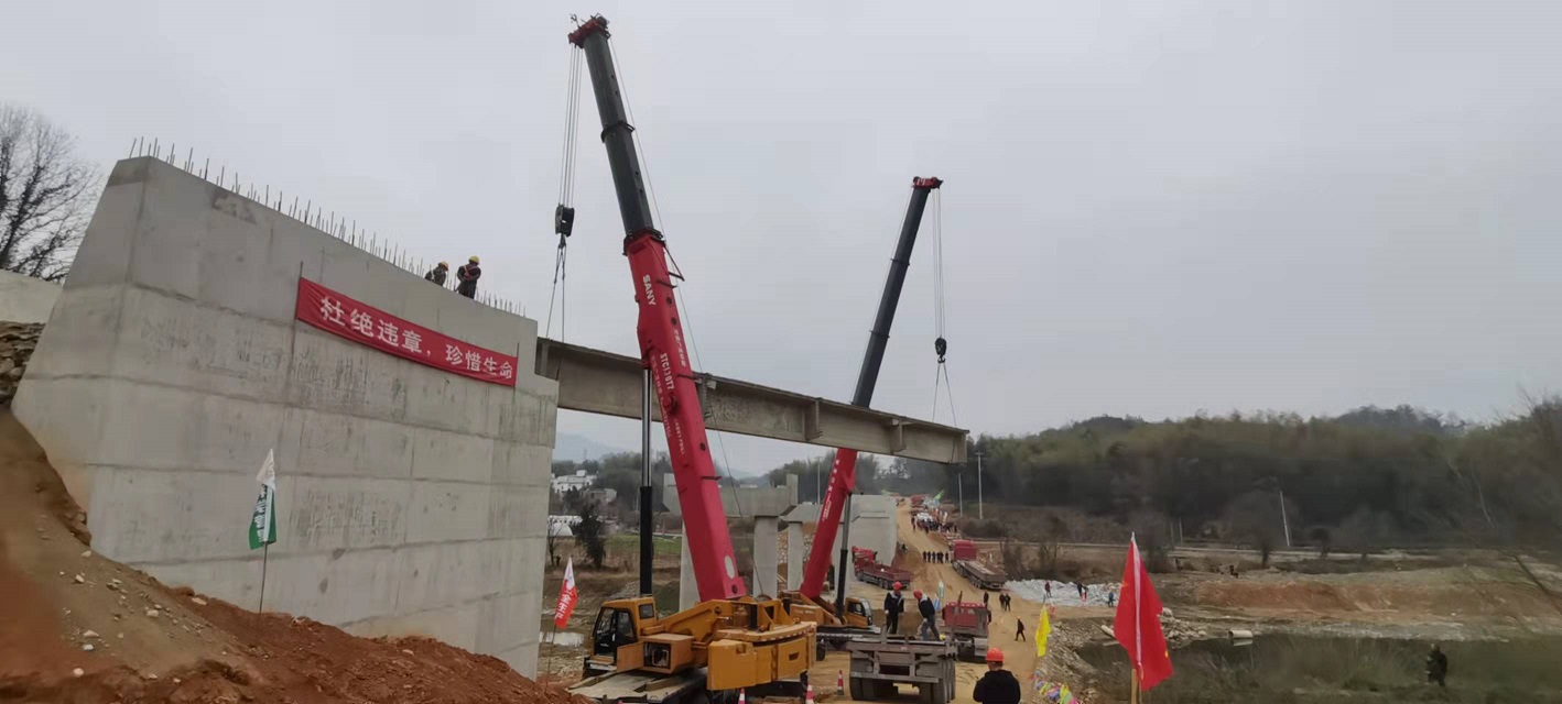 2022年1月8日,楊峰嶺橋開始吊裝,集團(tuán)公司領(lǐng)導(dǎo)也高度重視在建項(xiàng)目超危大分部分項(xiàng)工程施工,我部按照公司要求全程監(jiān)督跟蹤,協(xié)助配合好項(xiàng)目完成吊裝,做好警戒、旁站等工作。2022年1月9日下午17:20分左右,楊峰嶺共計(jì)12片梁板已順利安全完成吊裝,為2022年安全生產(chǎn)管理工作的良好形勢拉開了序幕。