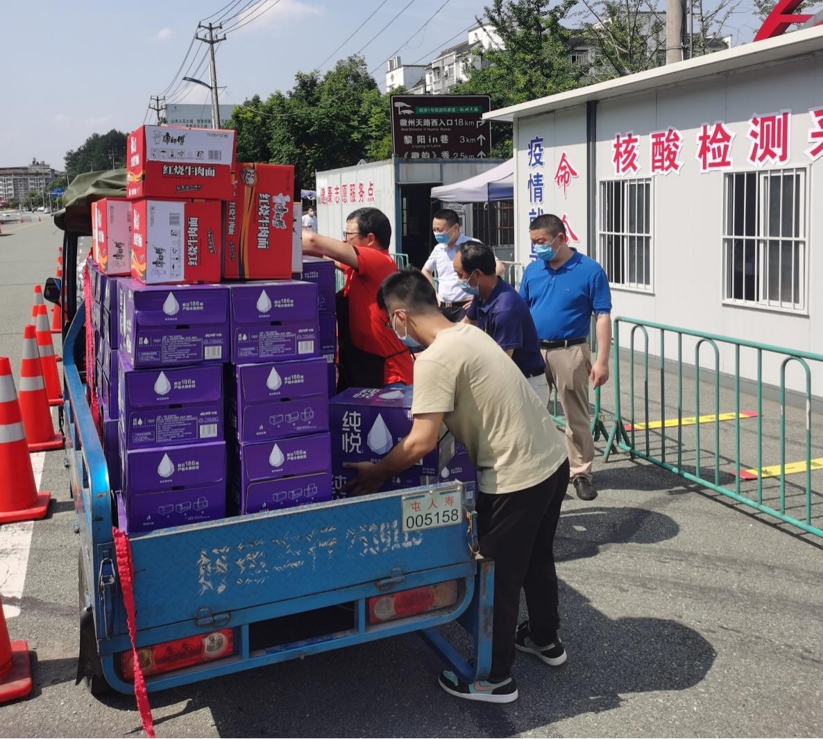 2022年6月14日下午,屯溪區(qū)統(tǒng)戰(zhàn)部、屯溪區(qū)工商聯(lián)副主席吉志勇、集團(tuán)公司黨支部書(shū)記李惠明、人力資源部經(jīng)理姚紅梅等若干代表分別赴屯溪區(qū)高速二號(hào)口和三號(hào)口開(kāi)展志愿服務(wù)活動(dòng),看望慰問(wèn)奮戰(zhàn)在疫情防控一線的工作人員,為他們送去礦泉水、方便面、八寶粥等物資。