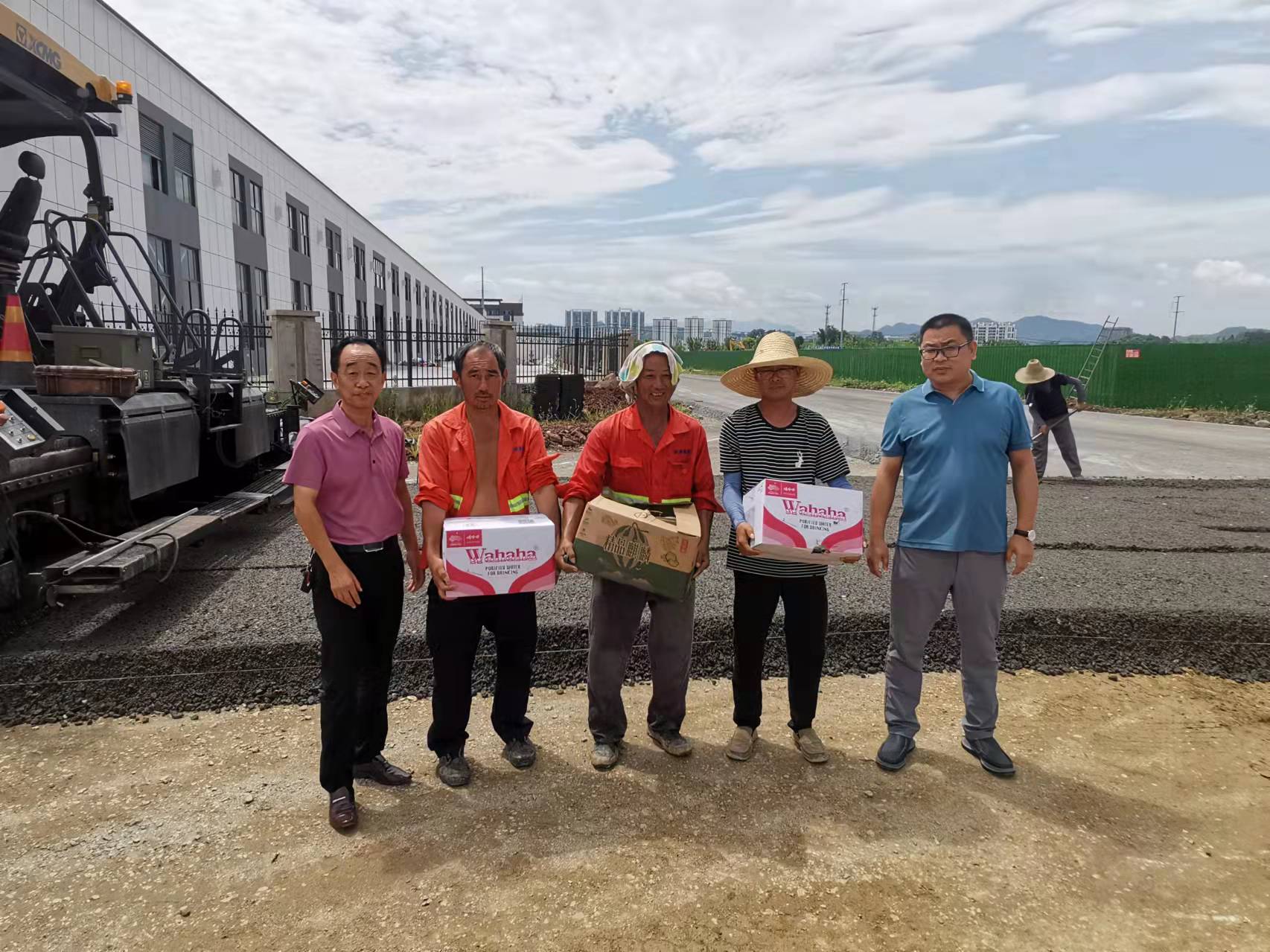 為切實維護高溫期間廣大一線職工的身體健康,2022年7月19日至20日,由集團公司總經理李利成、分管副總張遠林、黨支部書記李惠明、安全部經理吳正晨等組成慰問小組,分別對各在建項目及路面施工現(xiàn)場分批、分區(qū)域送去西瓜、礦泉水等慰問品,給奮戰(zhàn)在一線的職工送去了絲絲涼意,獻上了一份誠摯的關懷。