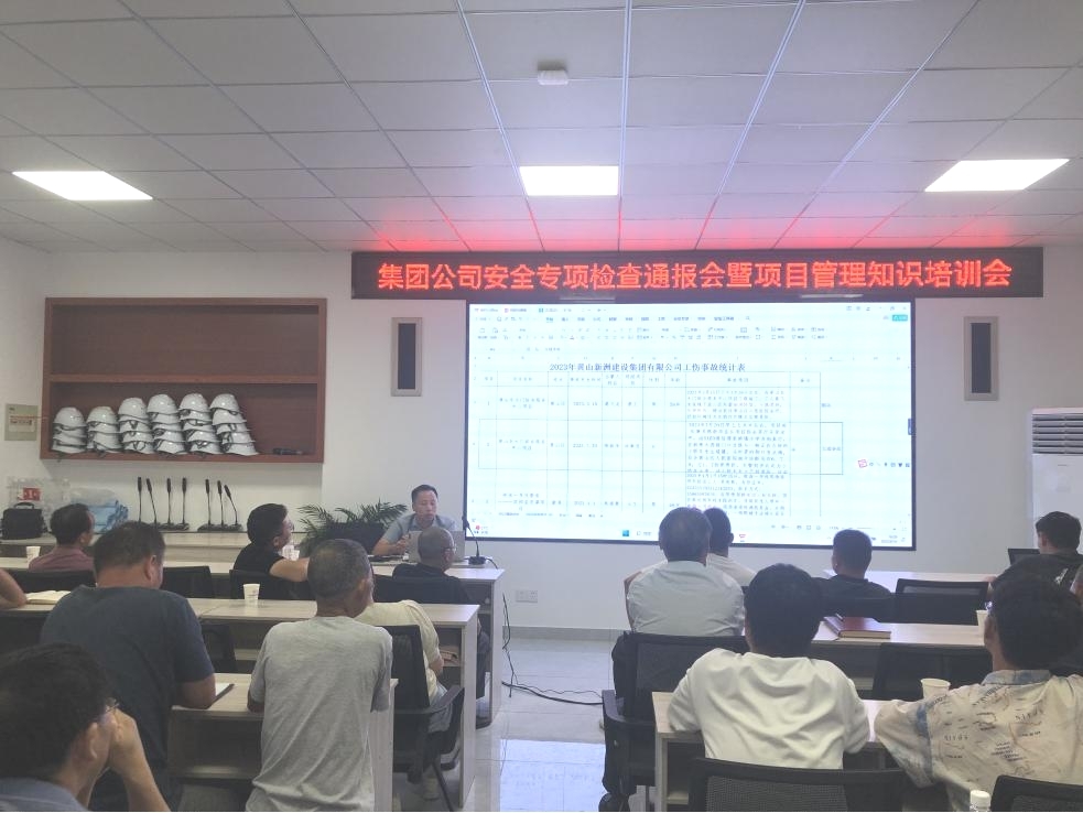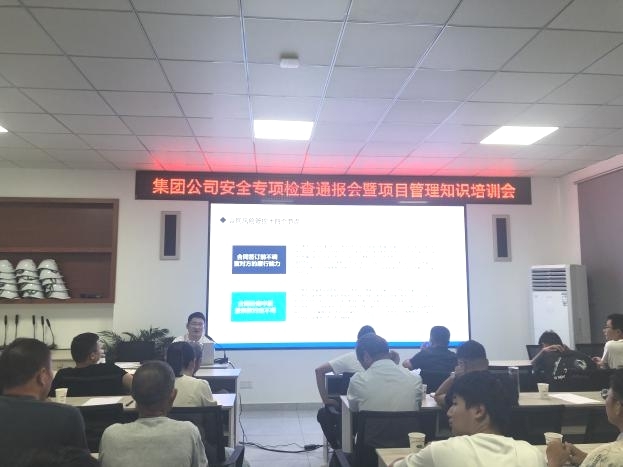 為積極防范各類事故發(fā)生,強(qiáng)化風(fēng)險(xiǎn)意識(shí),確保各在建項(xiàng)目施工安全穩(wěn)定,集團(tuán)公司于7月下旬組織開展了安全生產(chǎn)專項(xiàng)檢查,并于2023年8月19日在綠洲公司二樓會(huì)議室召開了關(guān)于安全專項(xiàng)檢查通報(bào)會(huì)暨項(xiàng)目管理知識(shí)培訓(xùn)會(huì)。會(huì)議由集團(tuán)公司分管安全副總經(jīng)理張遠(yuǎn)林主持,黨支部書記李惠明、法務(wù)部、安全部、財(cái)務(wù)部、綜合辦公室、人力資源部、工程部及項(xiàng)目管理人員共計(jì)41人參會(huì)。
