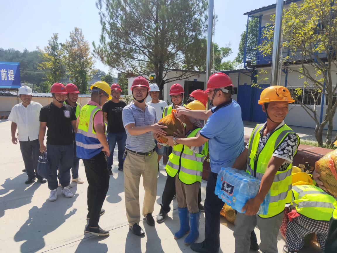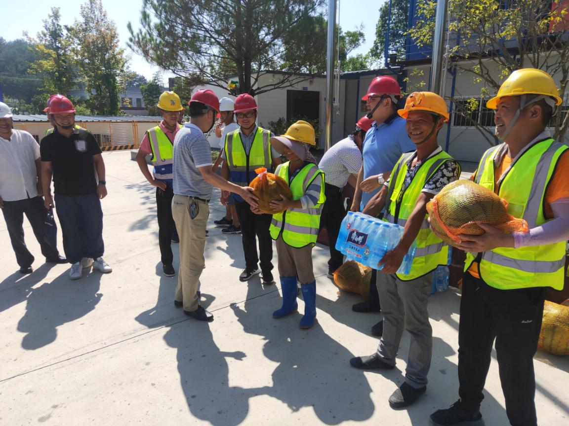 “大家辛苦了!大熱天里施工作業(yè)一定要注意防暑、注意安全”。市住建局副局長徐樹紅、建管處主任張先波一行一進(jìn)入施工現(xiàn)場就對正在作業(yè)的農(nóng)民工兄弟說道。為關(guān)懷一線建筑工人,加強高溫天氣下安全生產(chǎn)相關(guān)工作,8月18日上午,市住建局開展夏季高溫慰問送清涼活動,為在高溫下施工作業(yè)的工人們送來了防暑降溫用品。一瓶瓶礦泉水、一個個味甜個大的西瓜,為工人緩解暑熱,帶去一份清涼,收到慰問品的工人們都露出開心的笑容。
