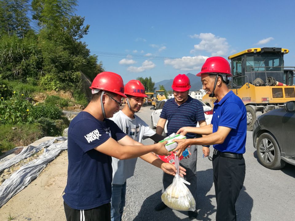 黨支部書(shū)記李惠明現(xiàn)場(chǎng)發(fā)放防暑降溫用品,表示慰問(wèn)