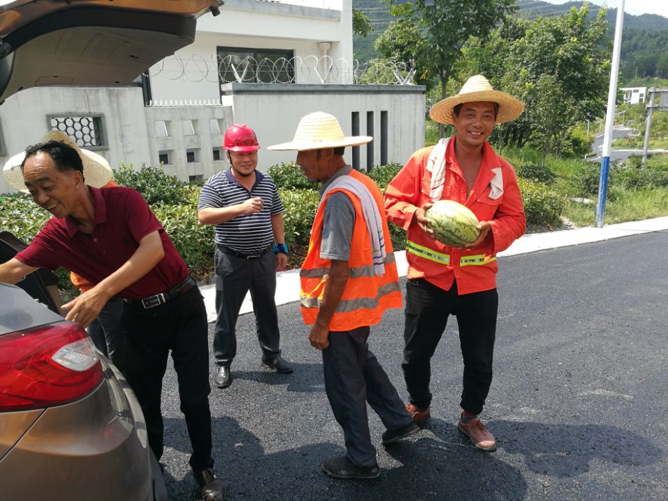 本次專(zhuān)項(xiàng)檢查活動(dòng)涉及到瀝青拌合站及三個(gè)瀝青作業(yè)施工班組、八個(gè)在建項(xiàng)目,安全環(huán)保部經(jīng)理吳正晨向現(xiàn)場(chǎng)負(fù)責(zé)人提出高溫季節(jié)施工要注意大型機(jī)械的防護(hù)保養(yǎng)工作,確保工人的安全出行,并做好相應(yīng)防暑降溫工作,強(qiáng)調(diào)了避開(kāi)高溫時(shí)段作業(yè),黨支部書(shū)記李惠明向現(xiàn)場(chǎng)施工人員表示慰問(wèn),并發(fā)放防暑降溫物品西瓜,仁丹,礦泉水等。
