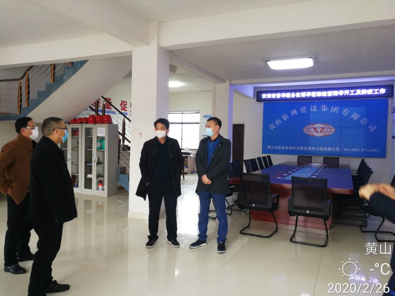 2020年2月26日,由省交通運輸廳辦公室主任張宗斌、省交通運輸廳政法處主任科員豐建雄等組成的防疫及開復(fù)工督查督導(dǎo)組對我公司承建的歙縣界牌嶺至黟縣漁亭改建工程(K0+000-K1+346)進行了檢查、督導(dǎo)工作,市海事局副局長胡要武、副縣長江成永,縣交運局局長吳會樂、副局長蔣紅雨等相關(guān)領(lǐng)導(dǎo)隨督導(dǎo)組陪同檢查。對項目的開工情況進行了了解,對疫情防控措施及防疫物資進行了檢查。